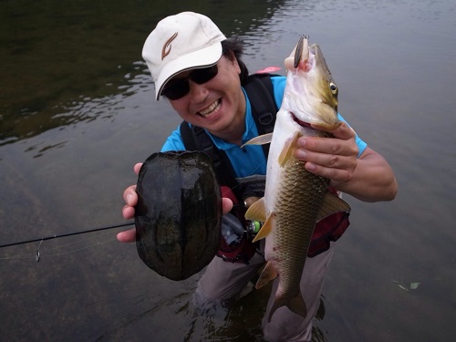 和製ボーンフィッシュ(ニゴイ)とのファイト中に亀を見付けて両方生け捕り