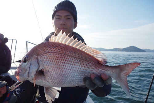 一緒に行った酔拳の使い手も初挑戦でしっかり真鯛を釣り